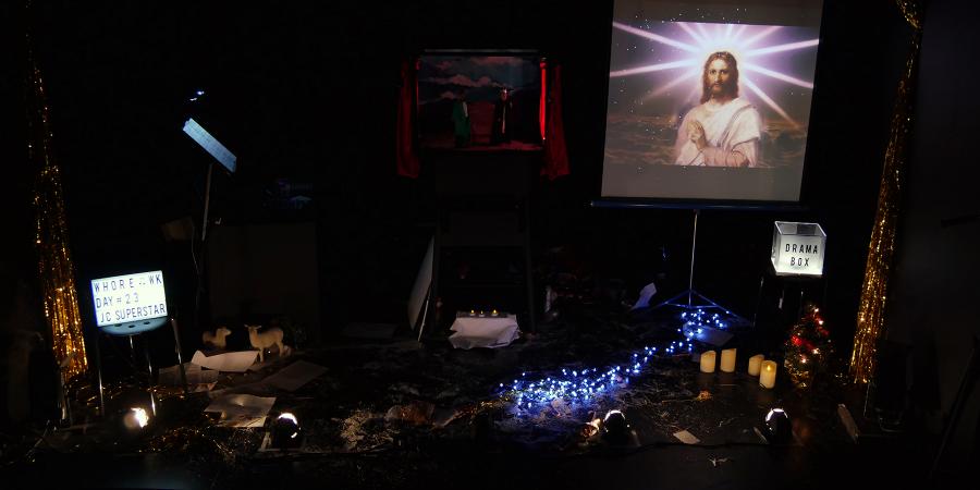 Eine musikalische Abwrackzeremonie von Tucké Royal, Adolfina Fuck (Matthias Meppenlink), Rose Slavery (Christoph Wirth) feat. Meduse Rise (Arantxa Martinez) nach Motiven von Bertolt Brechts Fatzerfragment