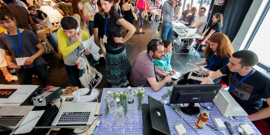 Im Festivalzentrum Haus der Statistik
